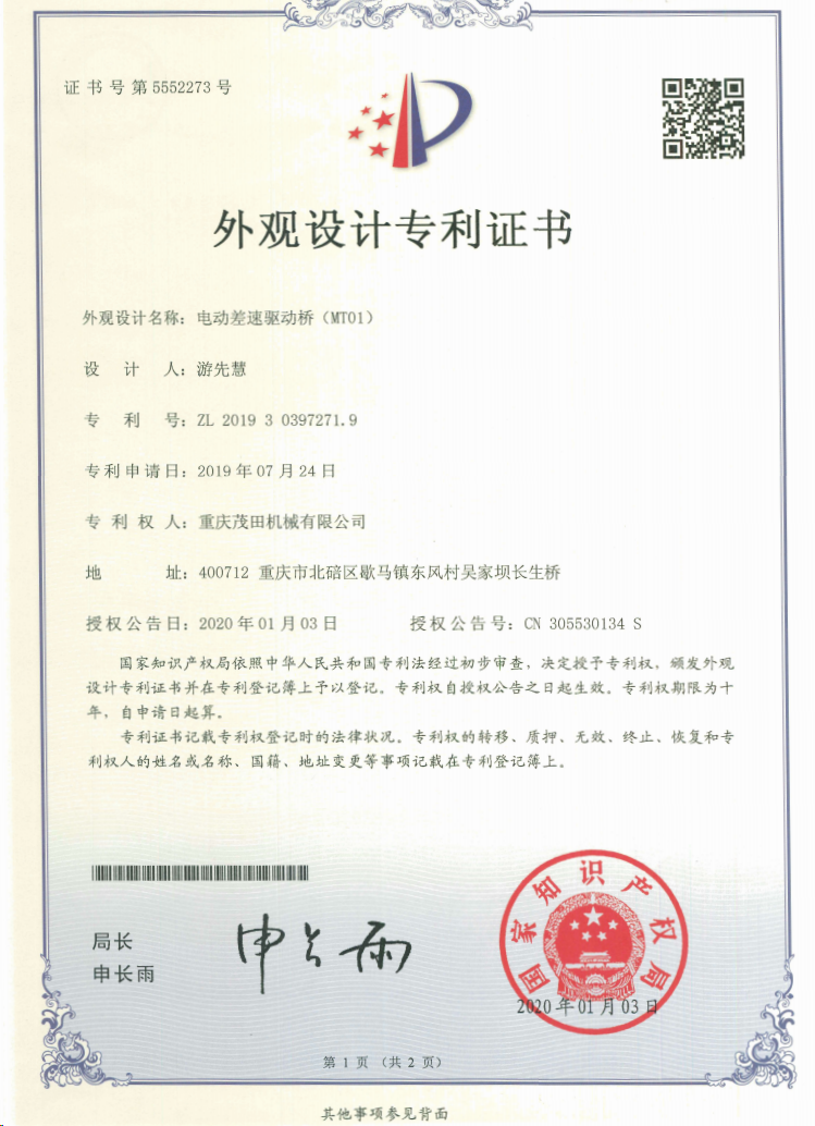 重慶茂田機械有限公司是國家級小巨人企業(yè)、國家高新技術企業(yè)、重慶市專精特新企業(yè)、重慶市知識產權優(yōu)勢企業(yè),致力于現代化山地農業(yè)機械、各類非標減速電機及其控制系統的研發(fā)、生產、銷售。擁有重慶市市級研發(fā)平臺1個 目前研發(fā)、生產、銷售產品廣泛應用于農業(yè)機械、醫(yī)療康復設備、交通代步工具、智能搬運設備、以及機器人動力系統等領域。我們的產品具有完整的自主知識產權,擁有多項專利技術及“重慶